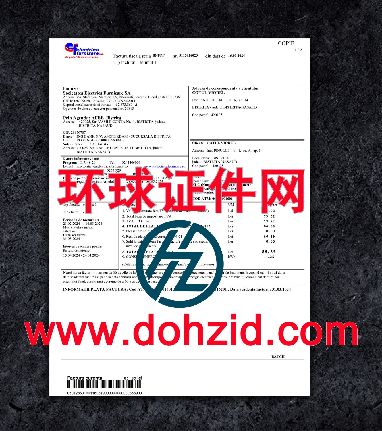 罗马尼亚电费账单