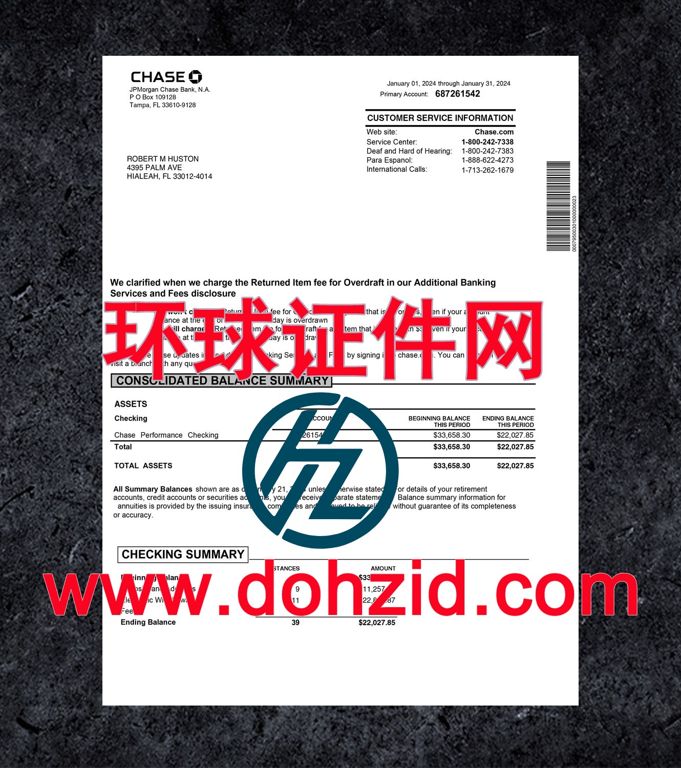 美国大通银行对账单